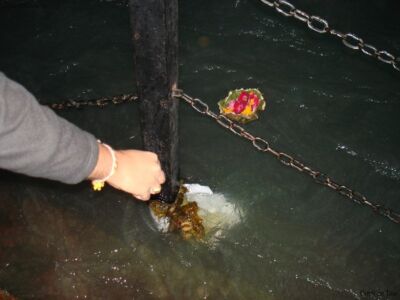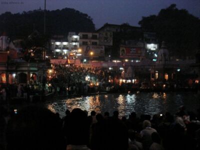 Sehr früh am Morgen, um 5:30 Uhr, wurden wir von Trommelgeläut geweckt. Von unserem Hotel sind wir zum Ufer runtergegangen, um der reliogiösen Morgenzeremonie beizuwohnen. Nach unserem Frühstück haben wir uns mit der Autorikscha auf den Weg nach Rishikesh gemacht. Als wir wieder zurückkamen haben wir gegen 18:00 auch der Abendzeremonie beigewohnt. Dies war ein sehr feierlicher Moment. An den Uferseiten des Ganges waren tausende Menschen versammelt. Tempelpriester führten die tägliche Zeremonie durch. Diese Zermonie wird Ganga Aarti genannt. Die Prister reinigten die Luft mit Feuer und sangen religiöse Lieder, bei die alle mit einstimmten. Nach der Zeremonie haben alle, so auch wir, eine Blumenschale mit einer Kerze und Räucherstäbchen in den Ganges gesetzt. Dies ist eine Opfergabe für die Gottheit Ganges und soll die Familie schützen.