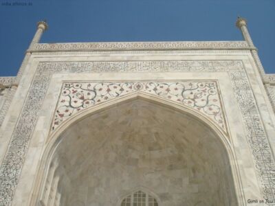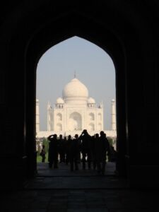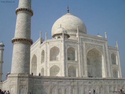 Das Taj Mahal gilt als das prächtigste Monument, dass jemals aus Liebe gebaut wurde. Der Mogulherrscher Shah Jahan erbaute das Taj zum Gedenken an seine zweite verstorbene Frau Mumtaz Mahal, die 1631 bei der Geburt ihres vierzehnten! Kindes im Alter von 39 Jahren starb. Mumtaz‘ Tod brach dem Herrscher das Herz und angeblich ergraute sein Haar über Nacht. Die Bauarbeiten dauerten von 1631 bis 1653. Mehr als 20.000 Menschen aus Indien und Zentralasien, sowie Spezialisten aus Europa waren mit dem Bau des Mausoleums beschäftigt. Shah Jahan fand nach seinem Tod im Jahre 1666 an Mumtaz‘ Seite ebenfalls im Taj Mahal seine letzte Ruhestätte.