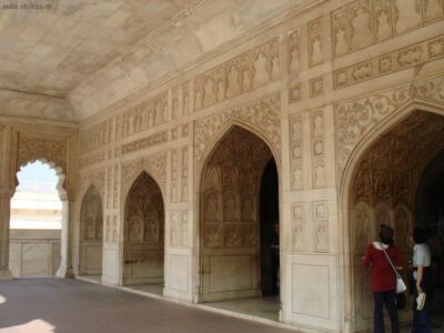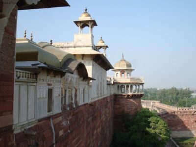Das Agra Fort ist eines der großartigsten Mogul-Festungen Indiens. Es besteht aus rotem Sandstein und wurde später unter Shah Jahan mit weißen Marmor zum Palast ausgebaut. Die gewaltigen Mauern sind über 20 m hoch und 2,5 km lang. Im inneren befindet sich ein wahres Labyrinth von Gebäuden, die eine Art Stadt in der Stadt bilden. Das Fort kann ausschließlich über das Südtor, das Amar Singh Gate, betreten werden. Seine gewinkelte Form sollte Angreifer verwirren. Im Fort selbst findet man unterschiedliche Paläste, die alle ihre eigene Funktion hatten und mehrere Moscheen.