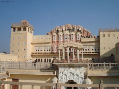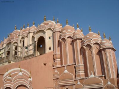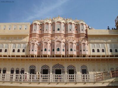 Zu den beeindruckensten Gebäuden in Jaipur gehört der Palast der Winde mit seiner bienenwabenartigen Architektur und dem rosafarbenen Sandstein. Maharadscha Sawaj Pratap Singh ließ das Gebäude 1799 erbauen, um den Hofdamen die Möglichkeit zu geben, das Leben und Treiben der Stadt zu beobachten. Das Gebäude hat über 900 kleine Fenster, durch dessen Fensterläden man die Menschen sehr gut beobachten kann. Man hat von hier einen wunderbaren Blick über den Jantar Mantar und den City Palace.
