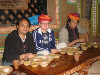 Nein, hierbei handelt es sich nicht um ein Schokodessert. Es ist vielmehr ein Dorfmuseum, in dem alte Traditionen aus Rajasthan ausgestellt werden. Ich würde es am ehesten mit einem Jahrmarkt vergleichen, wobei man sich aber hier um einige Jahrzente in der Zeit zurückversetzt fühlt. Es gibt hier Artisten, Seiltänzer, Zauberer, Puppentheater und und und. Man kann auf einem Kamel oder Elefanten reiten, durch ein wunderschönes Labyrinth laufen und ein kleines Museum besichtigen. Zum Abschluss lässt man sich in der Hütte nieder und genießt ein traditionelles Essen. Aber Vorsicht, hier wird es jetzt richtig scharf. Es hat mich aber beruhigt, dass ich bei Megha und Hiren ebenfalls Schweißperlen auf der Stirn gesehen habe. 😉