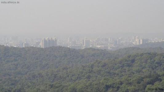 Nachdem wir die Höhlen erklommen haben, wurden wir von der Spitze des Basaltfelsen mit einem wunderschönen Blick über den Park und Mumbai belohnt.