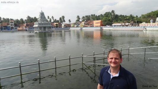 Auf dem Weg nach Kanyakumari haben wir den Suchnidram Tempel besucht, der im inneren exquisite Skulpturen und musikalische Säulen, die den Gottheiten Brahma, Vishnu und Shiva gewidmet sind, beherbergt. Zutritt zum Tempel gab es nur Barfuß und für die Herren zusätzlich mit freien Oberkörper. Bei knapp 40°C Außentemperatur war das eine sehr hitzige Angelegenheit mit nackten Füßen über den heißen Asphalt zu laufen. Im Tempel selbst war Fotografieren verboten.