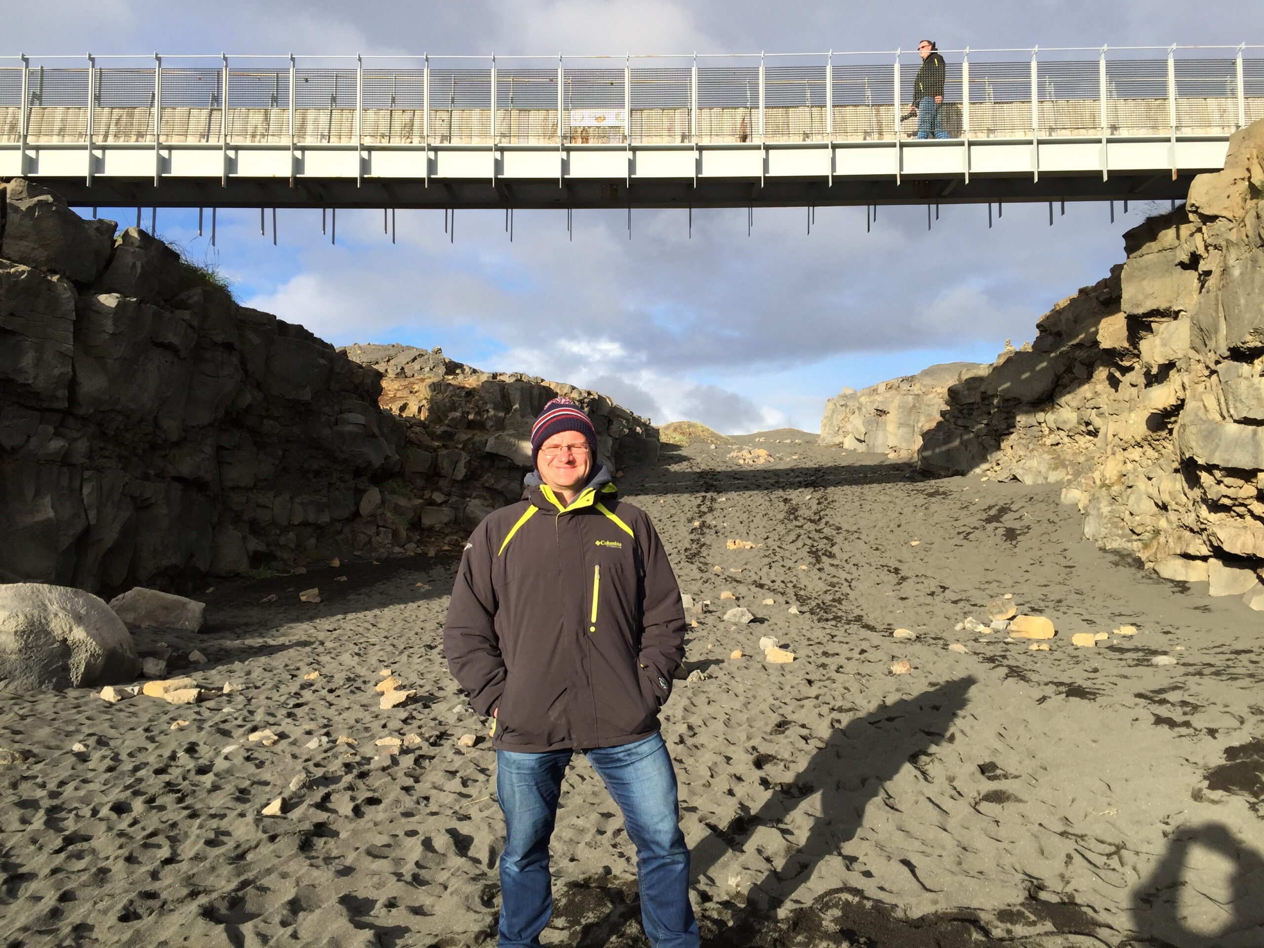Zu guter Letzt haben wir uns die Riftzone der Kontinentalplatten auf der Halbinsel Reykjanesskagi angesehen. Die Kontinentalplatten driften pro Jahr ca. 2 cm auseinander. Hier sind die beiden Platten durch eine kleine Brücke miteinander verbunden. Ich weiß nicht, ob die Brücke jedes Jahr verlängert wird. 😉