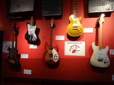 Nach dem Stadionbesuch ging es zurück in den Stadtteil Temple Bar, in dem auch die berühmte Temple Bar liegt. Mein Ziel war das Irish Rock’n’Roll Museum Experience. Experience? Ja, es war nicht nur einfach eine Ausstellung, wo über Künstler informiert wird. Vielmehr wird versucht, dem Besucher zu vermitteln, was es für ein Gefühl es ist ein Rockmusiker zu sein. In einem Probenraum kann man sich selbst an den Instrumenten mal ausprobieren.