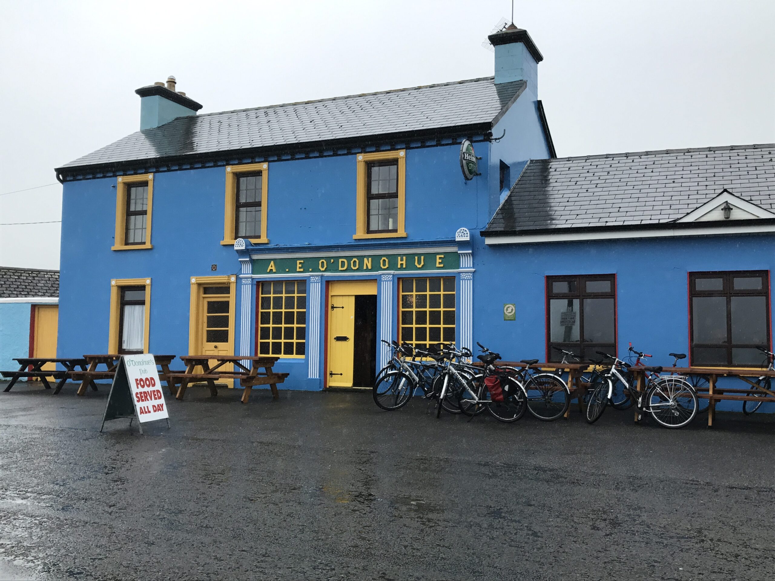 Die Tour führte uns heute an der Küste entlang über Doolin nach Fanore und zurück durch die Mondlandschaft der Burren nach Ennistymon. Wegen der widrigen Wetterbedingungen machten wir in Doolin den ersten Einkehrschwung in den Pub, um uns mit etwas Tee aufzuwärmen.