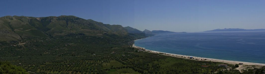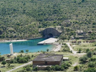 Zum Mittag gab es Spaghetti mit Meeresfrüchten und gut gestärkt ging es in die letzten kleinen Anstiege. Kurz vor Himarë fuhren wir entlang der Palermobucht. Unter den Kommunisten war diese Strecke für ausländische Touristen tabu. Selbst Einheimische, die nach Himarë wollten, mussten die Straße verlassen und einen langen Umweg über holprige Bergstraßen machen. Hintergrund war, dass sich hier ein geheimer Hafen mit U-Boot-Bunker befand, der von den Sowjets in den 50er Jahren errichtet wurde und nach dem Bruch mit der Sowjetunion von den Albanern weiter betrieben wurde.