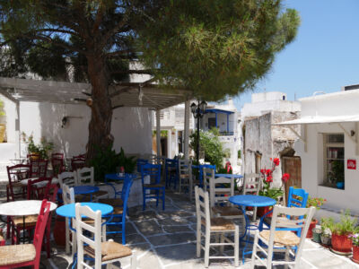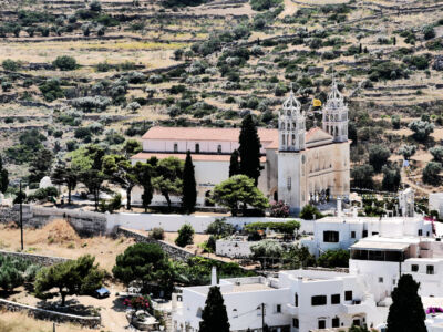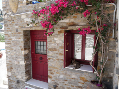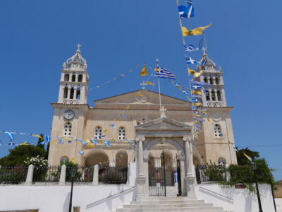 Oben hatten wir natürlich eine tolle Aussicht und heftigen Wind um die Nase. Bei Léfkes machten wir unsere Mittagspause und besichtigten danach das Dorf. Früher war Léfkes der Hauptort der Insel. Auf Grund der Piraterie im Mittelmeer war es ratsamer, lieber mehr im Landesinneren zu leben, als direkt am Meer. Früher lebten hier 3500 Menschen, heute sind es nur noch rund 700. Léfkes gilt als das schönste Dorf auf Páros.