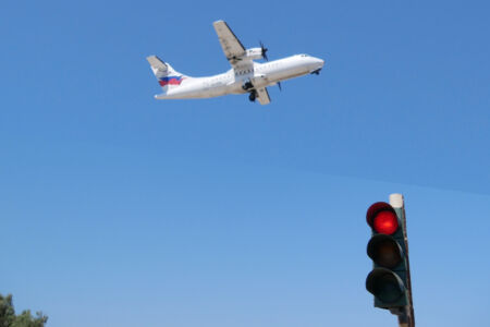 Es gibt auf Náxos auch eine Ampel. Diese steht quasi an einer „großen“ Straßenkreuzung. Nur kreuzen sich hier keine Autostraßen, sondern die Straße zwischen Náxos-Stadt/Agios Prokopios und die Start- und Landebahn des Flughafen von Náxos. Auf meiner Fahrt nach Náxos-Stadt habe ich auch artig an der roten Ampel gewartet.