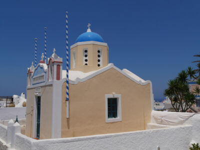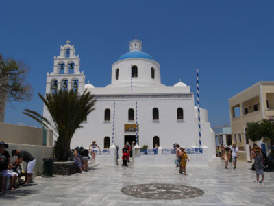 Der frühere Seefahrerort liegt an der äußersten Nordspitze der Insel. Bei einem verheerendem Erdbeben im Jahre 1956 wurde der Ort fast vollständig zerstört. Vor dem Beben lebten 8000 Menschen hier, heute gerade mal 500. Der Ort wurde liebevoll wieder aufgebaut und ist bekannt für seine Postkartenmotive. Für die Hiergebliebenen hat es sich auf alle Fälle gelohnt. Die Grundstückspreise haben Münchener Niveau erreicht und wer hier ein Hotel besitzt, hat ein Leben lang ausgesorgt (zumindest bis zum nächsten Erdbeben).