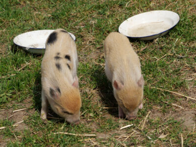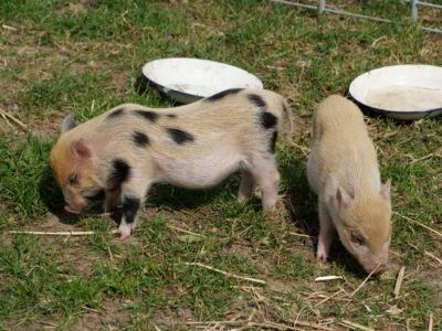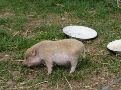 Sehr putzig sind die drei Wochen alten Hausschweine. Ein Zirkusmitarbeiter erklärte auch, dass die nicht viel größer werden.
