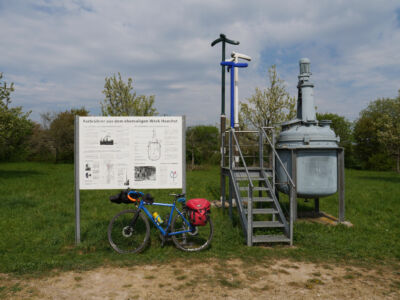 Hinter Hattersheim hatte mich dann endlich die Natur wieder und ich war wieder auf der RheinMain Rundroute. Der alte Farbrührer aus den Höchster Werken wirkte mitten im Park etwas grotesk, aber es war interessant, etwas über die industrielle Geschichte zu erfahren.