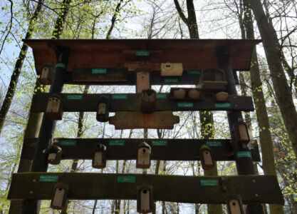 Ich war auf den Limesradweg, der mich bis Langen-Bergheim führte. Im Wald lernte ich auch noch was über die verschiedenen Arten von Vogelhäusern. Das Haus mit der Nr. 29 auf dem Bild ist übrigens ein Häuschen für Fledermäuse.