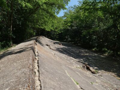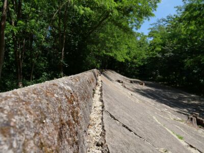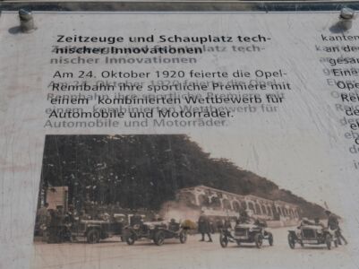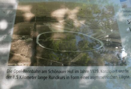 Im Wald südlich von Rüsselsheim erreichten wir unser heutiges Ziel, die alte Opelrennbahn. Die Rennbahn wurde von der Adam Opel AG 1919 errichtet. 1920, also vor 100 Jahren, feierte die Rennbahn ihre sportliche Premiere. Sie galt in den 20er (‚tschuliging 1920er) Jahren, als eine der schnellsten Rennbahnen Europas, auf der Durchschnittsgeschwindigkeiten von 140 km/h erreicht wurde.