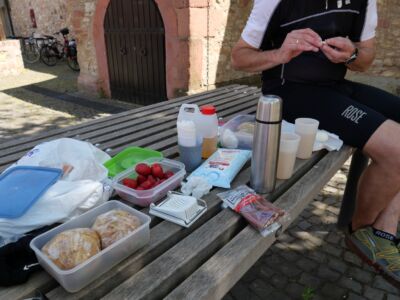 Weiter ging es nach Rüsselsheim. Wir waren immer noch auf der Suche nach einem schönen Ort, wo wir unsere Brotzeit machen konnten. Diesen fanden wir in der Festung von Rüsselsheim. Ein Eierschneider kam zum Einsatz und ja, der Ebbelwoi war sehr lecker.