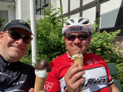 Bei einer anderen Tour hatte ich schon geschrieben, dass Dreieichenhain eine sehr schöne Altstadt hat. Und jetzt haben auch die Cafés und Eisdielen wieder auf. Sehr lecker ist das Eis beim „Café Altstadt“. Wir holten uns jeder zwei Kugeln und genossen diese in der Sonne auf einer Bank. Danach sollte es direkt weitergehen. Ging es auch – nach zwei weiteren Eiskugeln. Es ist schlimm, wenn die Auswahl so groß und auch noch lecker ist.