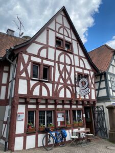 Nach drei unterschiedlich langen und steilen Anstiegen erreichte ich mein heutiges Tagesziel Eppstein. Ich machte ein paar Bilder von der Burg und wollte mir noch die wunderschöne Altstadt anschauen. Am Wernerplatz bekam ich plötzlich ein Leuchten in den Augen, als ich ein mir von der Donautour vertrautes Schild sah: „Klosterbrauerei Weltenburg“.