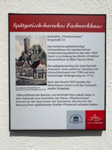 Ach ja, woher kommt eigentlich der Name „Pflasterschisser“? Das ist ein Spitzname für die Eppsteiner (ich bin mir sicher, ob es wirklich eine gute Idee ist, einen Eppsteiner mit der Bezeichnung „Hi, Pflasterschisser“ zu begrüßen). Der Name rührt daher, dass die Eppsteiner früher für die Nutzung ihrer gepflasterten Straßen Pflasterzoll erhoben hatten.