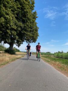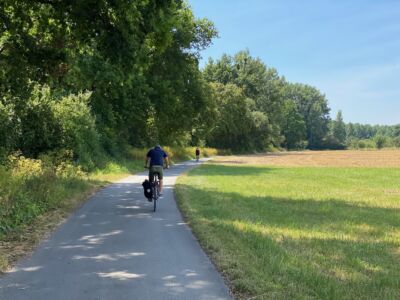 Über Worfelden, Büttelborn, Dornheim und Leeheim ging es immer auf Radrouten zum Altrhein und dann zu einem schönen Sandstrand an den Rhein. Da der Ort nicht mit dem Auto erreichbar ist, zieht es keine Menschenmassen an diesen Ort.