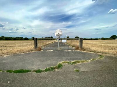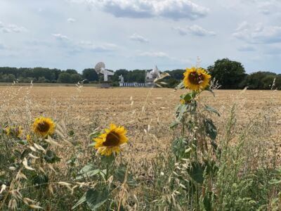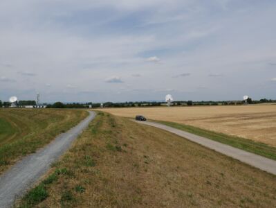 Wir fuhren die 10 Kilometer nach Geinsheim und trafen unterwegs auf mysteriöse riesige Satellitenschüsseln. Was haben diese wohl zu bedeuten? Eine Recherche im Internet ergab, dass es sich um eine Satellitenmessstelle der Bundesnetzagentur handelt, um den Weltraumfunk zu messen.