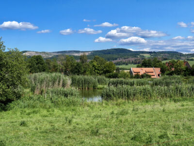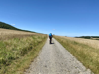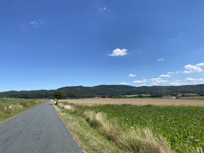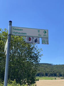 Wir machten uns dann auf den Weg und genossen die ersten Eindrücke des Harzvorlandes. Unser Richtungsweiser auf den Hinweisschildern während der Tour ist übrigens eine Hexe auf einem Fahrrad.