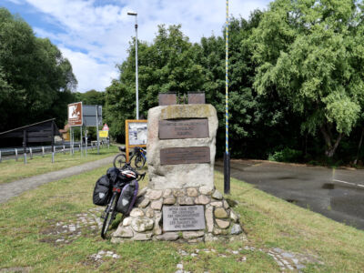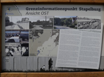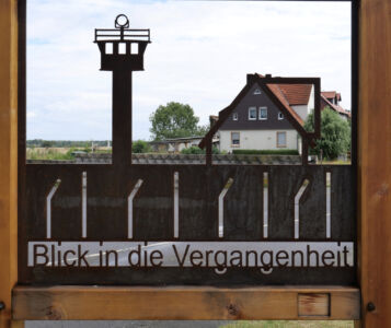 Am ehemaligen Grenzübergang bei Stapelburg mussten wir dann die Sonnencreme vorholen. Die Grenze trennte hier bis 1989 die beiden Orte Stapelburg und Eckertal. Anhand eines Schattenrisses kann man nochmals nachempfinden, wie der Blick von West nach Ost war.
