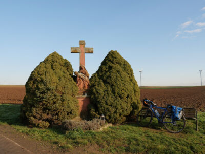 Zurück ging es dann durch die Kirschbaumplantagen von Ockstadt. Das war eine schlammige Angelegenheit. Leider wurde es auch nicht besser, als wir irgendwann zwischen Feldern auf eine Umleitung stießen. Die schöne asphaltierte Strecke war einfach nicht mehr da und wir mussten auf schlammige und rutschige Feldwege ausweichen. Hinter mir hörte ich es ziemlich oft gen Himmel fluchen.