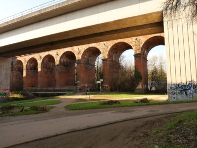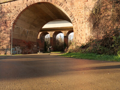 Bei Friedberg kamen wir am Rosentalviadukt vorbei, dass im Volksmund auch „24 Hallen“ genannt wird. Das Viadukt ist eine zwischen 1847 und 1850 erbaute Eisenbahnbrücke über das Tal der Usa. Für den Eisenbahnverkehr wird aber die daneben stehende 1982 erbaute Betonbrücke benutzt. Das Viadukt wurde damals nicht abgerissen und steht unter Denkmalschutz.
