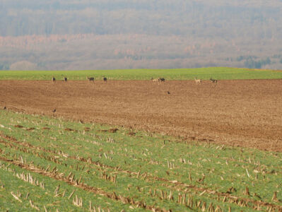 An der Nidda entlang ging es in den Norden via Ober-Wöllstadt in Richtung Friedberg. Unterwegs auf den Feldern beobachteten wir eine große Gruppe von Rehen.