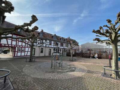 Weiter ging es über Sulzbach und Liederbach durch die Felder nach Hofheim. Hofheim ist ein schönes Städtchen mit viel Fachwerkhäusern. Am Samstag findet hier der Wochenmarkt statt und wir mussten ernüchtert feststellen, dass heute verdammt viele Menschen unterwegs waren und es unmöglich war ein ruhiges Plätzchen für unser Picknick zu finden.
