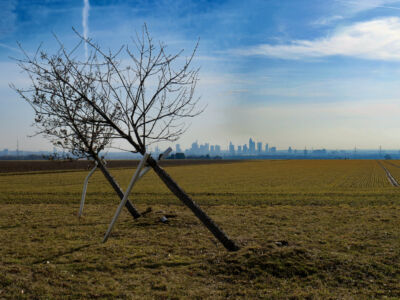 Kurz vor Eschborn trifft man auf ein seltsames Wäldchen. Alle Bäume hier sind schief. Hat hier jemand beim Einpflanzen nicht aufgepasst? Nee, das ganze ist ein Kunstwerk und erinnert an die Schlacht bei Eschborn aus dem Jahre 1389 zwischen Kronberger Rittern und Frankfurter Bürgern.