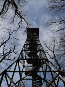 Aber Obi hatte eine blendende Idee, wo wir hinkönnen und führte uns zu unseren heutigen Tourhighlight – den Meisterturm. Das es dort teilweise mit 15% Steigung hochgeht hatte er wahrscheinlich verdrängt. Vor dem Turm fanden wir einen schönen Platz in der Sonne für unsere Pause. Natürlich fuhren wir danach auch noch die letzten Meter bis zum Turm hoch.