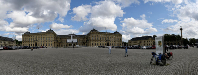 In Würzburg angekommen, machten wir einen Abstecher zur Residenz, ein imposanter Palast aus dem 18. Jahrhundert und schauten uns den zugehörigen Hofgarten an. Über die Alte Mainbrücke mit Aussicht auf die Festung Marienberg gelangten wir zum Mainuferradweg und machten uns auf den Weg zu unserem heutigen Ziel Karlstadt.