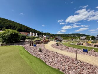 In Gelnhausen schauten wir uns am Obermarkt das Fachwerkhausensemble an. In Haitz machten wir in „Anni & Sarah’s Wirtshaus“ Halt. Hier ist ein sehr schöner Biergarten direkt an einer tollen Minigolfanlage.