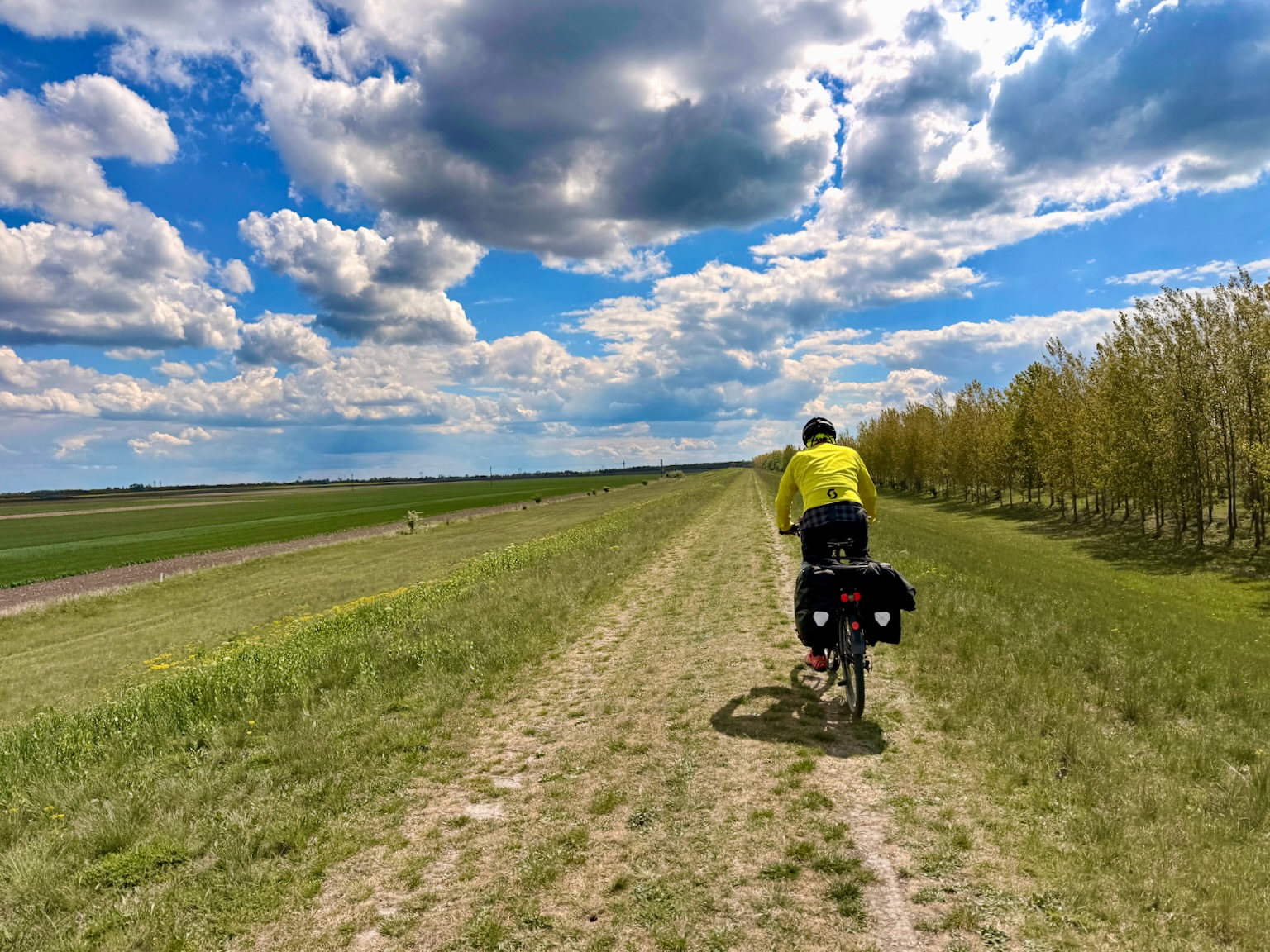 Hier in Ungarn ist der Donauradweg eine Kombination aus super ausgebauten Radwegen, wenig befahrenen Landstraßen durch ursprüngliche Ortschaften und auch durch zurückhaltende menschliche Eingriffe naturbelassene Wege. Thilo vermisst ein bisschen sein Mountainbike. Das Donauufer ist gesäumt von einer unendlichen Anzahl kleiner Anglerstege. Gefühlt angelt hier jeder. Vollständigkeitshalber muss aber auch gesagt werden, dass wir heute den größten Teil an der Ráckevei-Donau, einem Nebenarm der Donau, entlang gefahren sind. Erst später, hinter Dömsöd, kamen wir an die Donau.